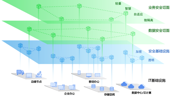 基于零信任架构的数据安全基础设施,帮助企业快速完成安全基础架构升级,自适应企业运营模式,推动企业的数字化转型快速、安全发展。
