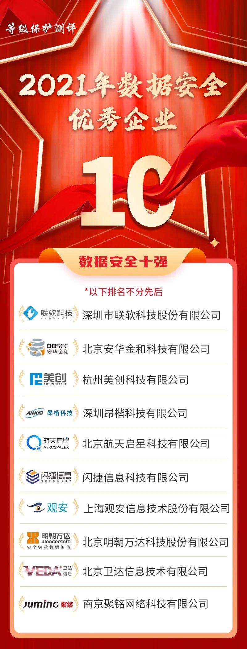 由等级保护测评主办的2021年网络安全优秀企业及产品评选活动落下帷幕,活动旨在促进我国网络安全产业自主创新能力,为共同做好网络安全工作做出鼓励与鞭策,同时为客户选择网络安全解决方案和产品提供参考依据。活动经过专家评审及大众投票等多个环节,最终遴选出多个优秀厂商及产品。航天启星作为国内零信任安全架构先行实践者,凭借前沿的技术、超前的理念和过硬的产品质量强力入选“数据安全十强“榜单。